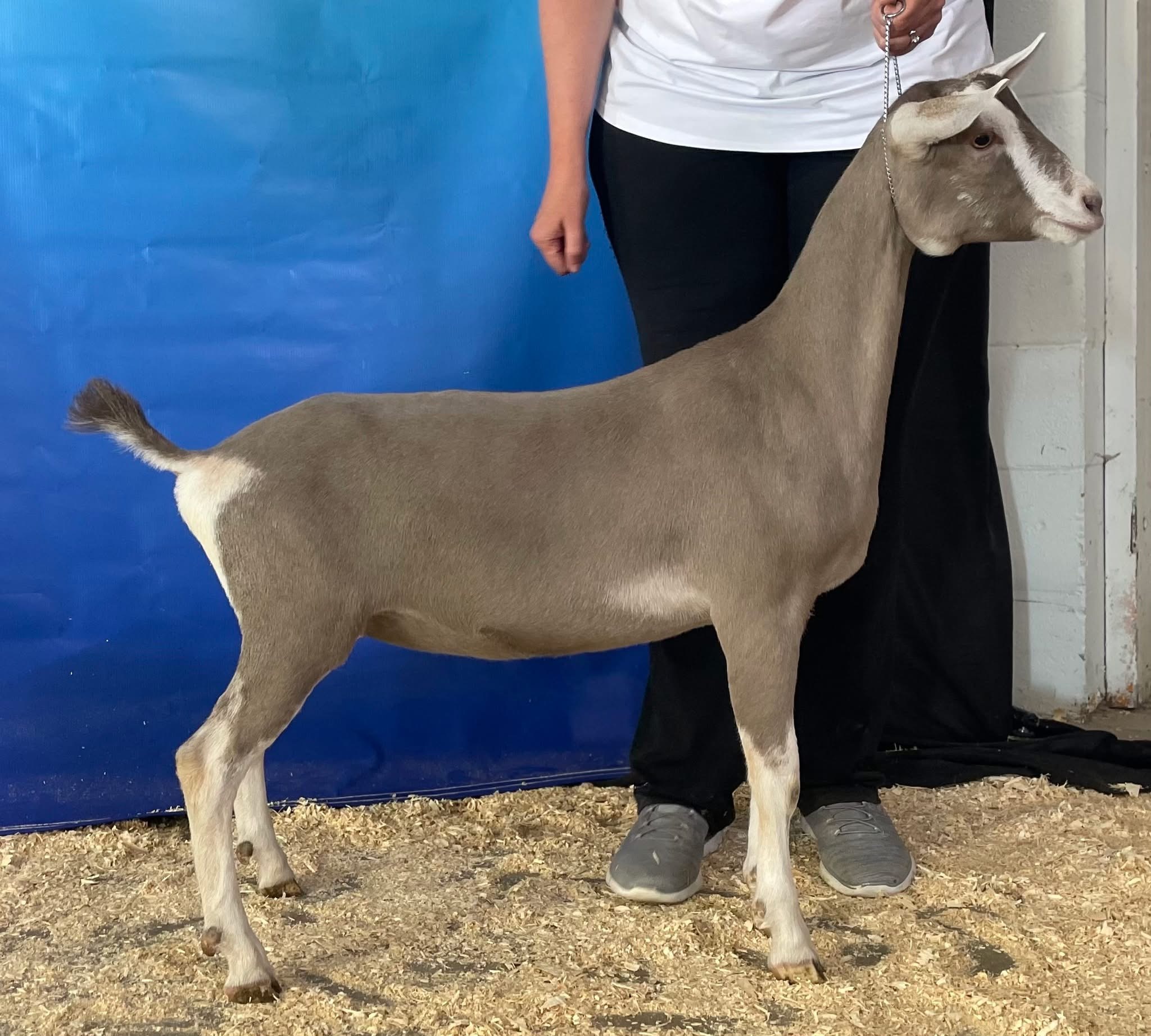 We bred Rhupee to Royal Cedars Saucy Sebastian with the hopes of getting a doeling and we love the one that we got! Rhose Quartz earned her dry leg in her first show out in the Spring and in her subsquent two shows earned another dry leg and was Reserve Jr. at our MN State Fair. She was the 4th place Sr. kid at the National show. She has been bred to Rhuckus for March kids.